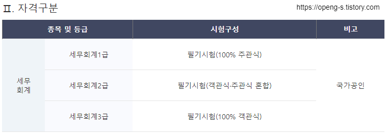 세무회계는 1급, 2급, 3급으로 나뉘어 있고