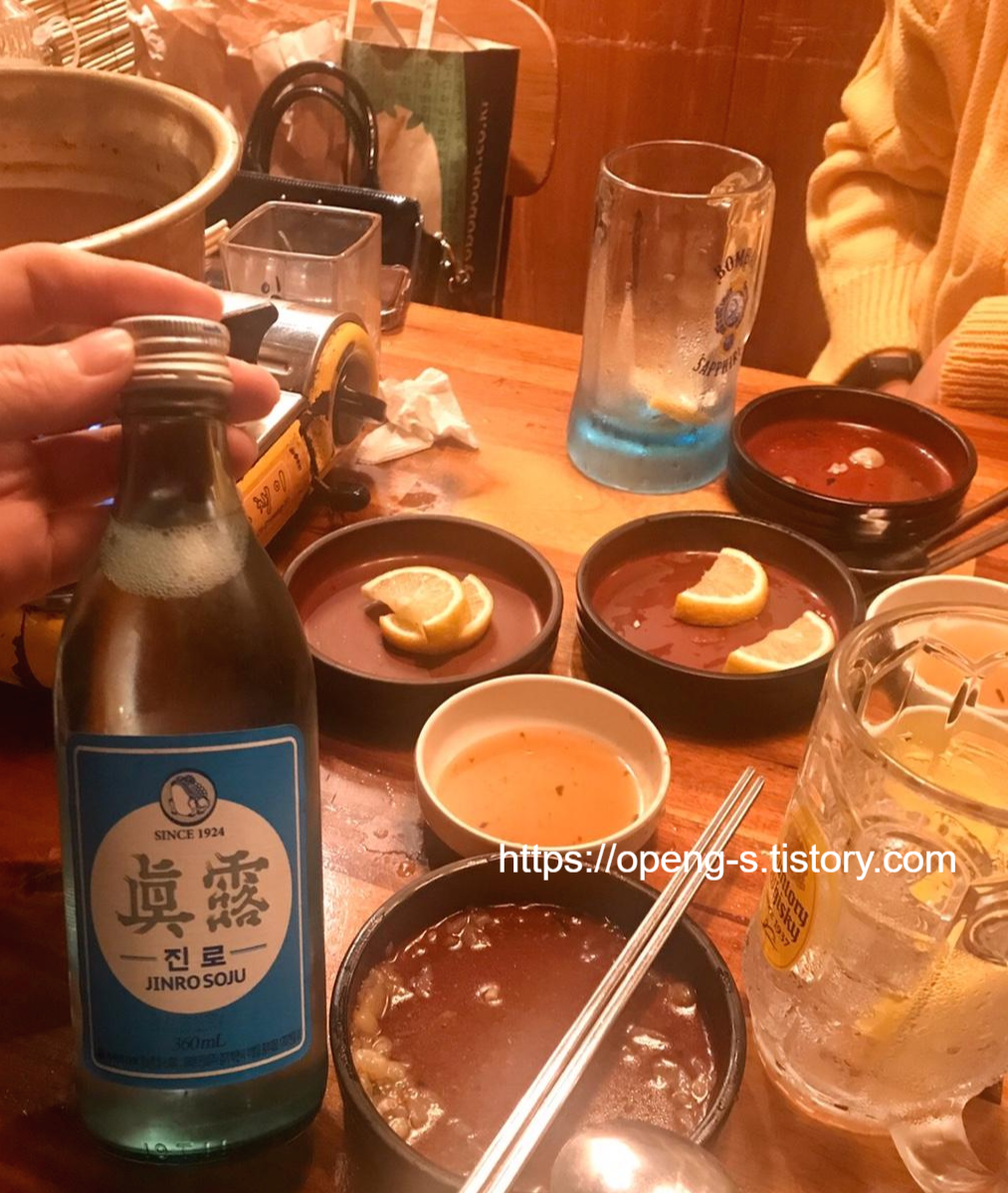 소주잔을 너무 늦게 가져다주셔서 하이볼 마시던 잔에 콸콸콸 부어서 같이 짠~