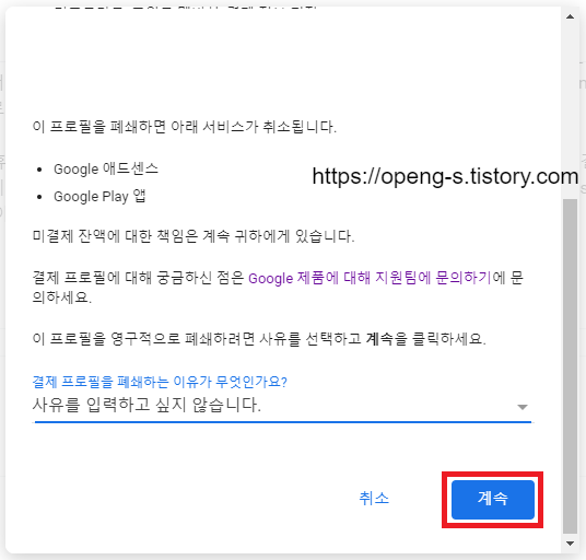 4. 스크롤 내려서 계속 누르고 결제 프로필 삭제를 누른다.