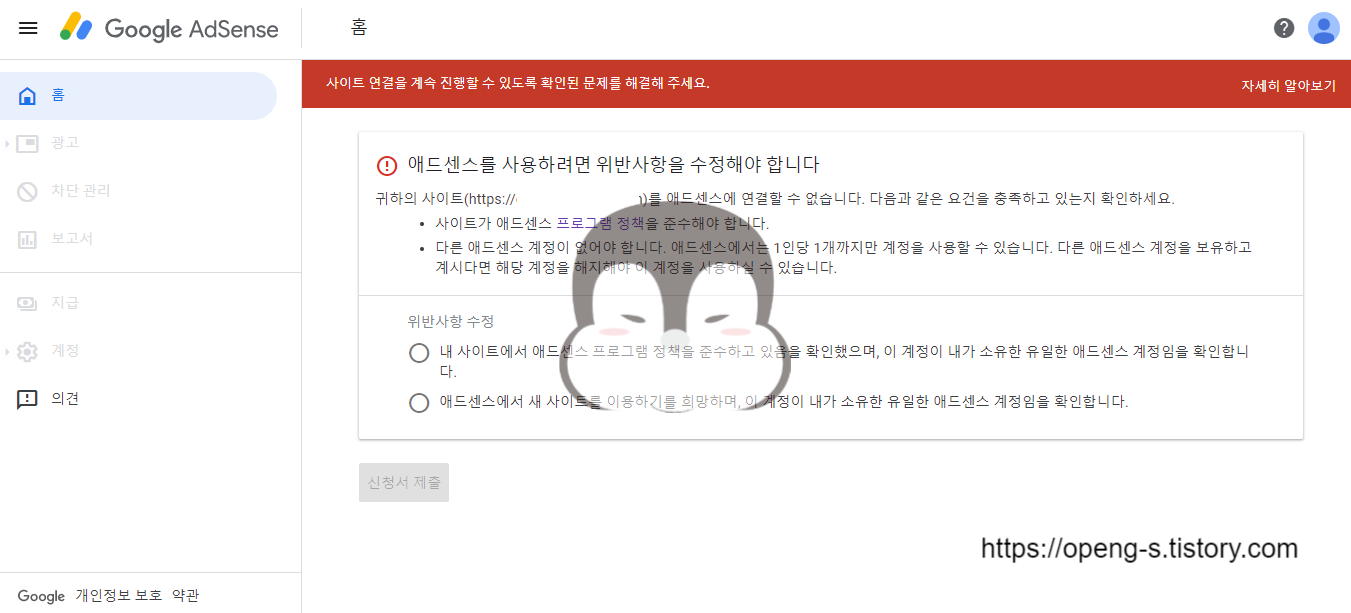 애드핏 심사 통과 후 애드센스도 당연히 될 것이라 여겼지만,