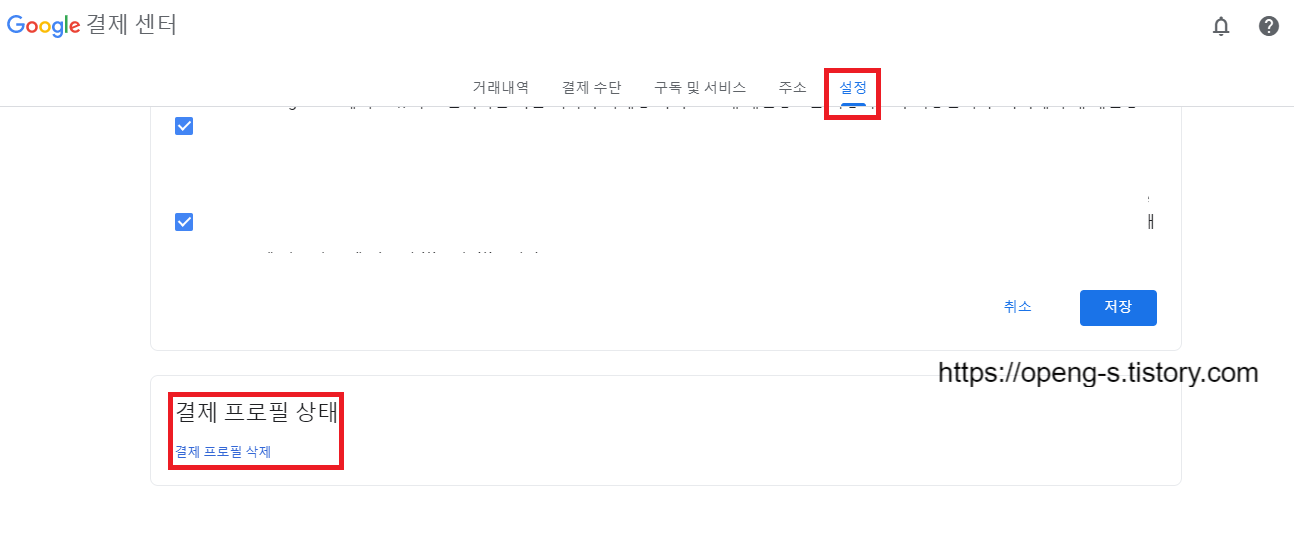 3. 설정 - 결제 프로필 삭제를 누른다.