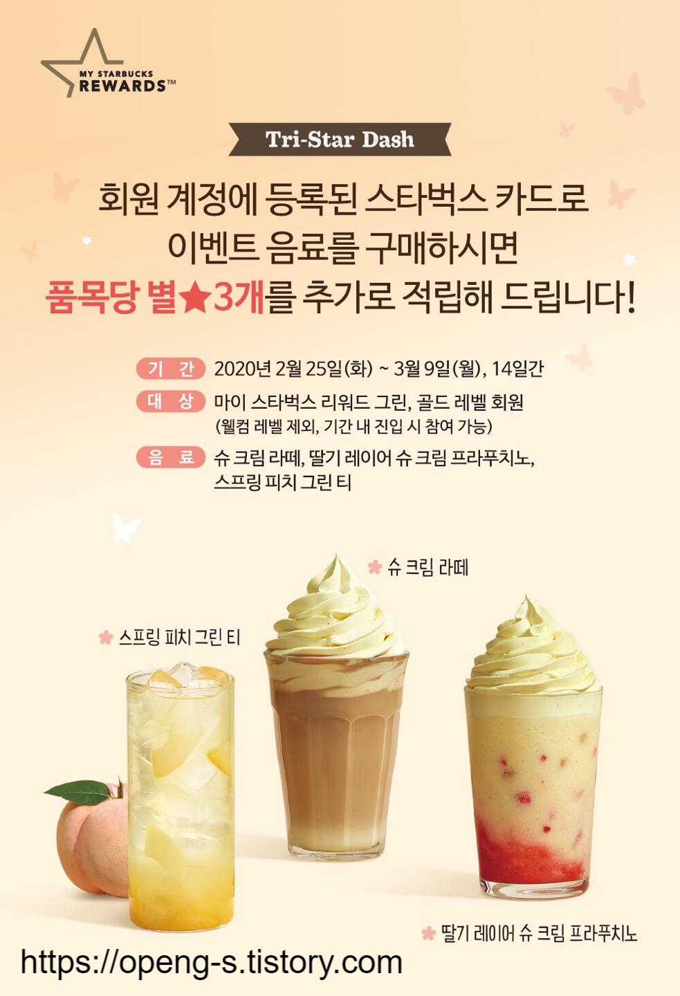 스프링 피치 그린 티 / 슈크림 라떼 / 딸기 레이어 슈크림 프라푸치노