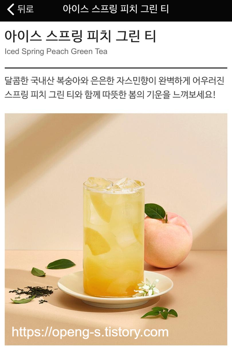 이 중에 오펭은 스프링 피치 그린 티를 주문했어요.!