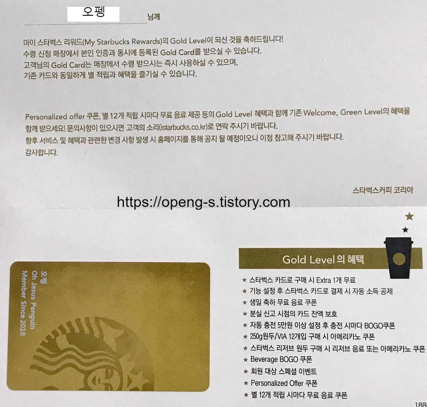 지난번에 스타벅스 골드카드 신청 및 제작 중이라는 제목으로