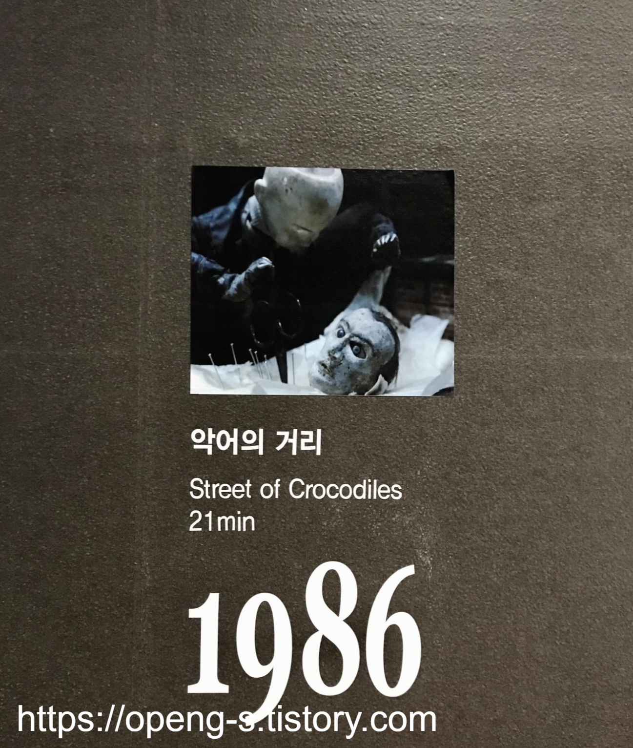 관람이 끝나고 나오면 퀘이형제의 필모그래피가 정리되어 있어요.
