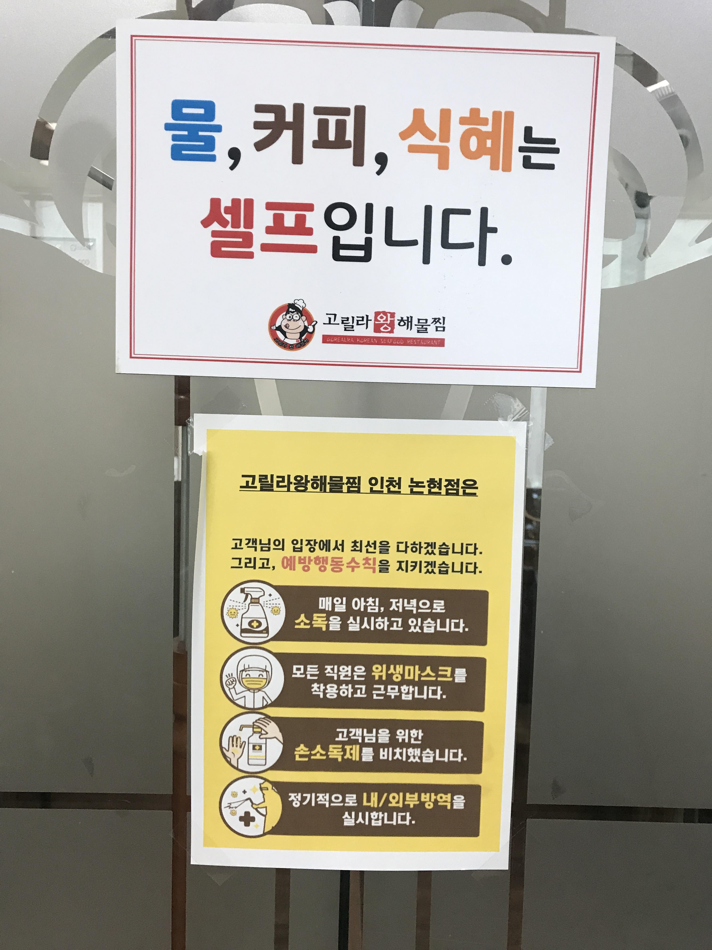 고릴라 왕 해물찜도 역시 이런 종이가 붙어있더라고요.