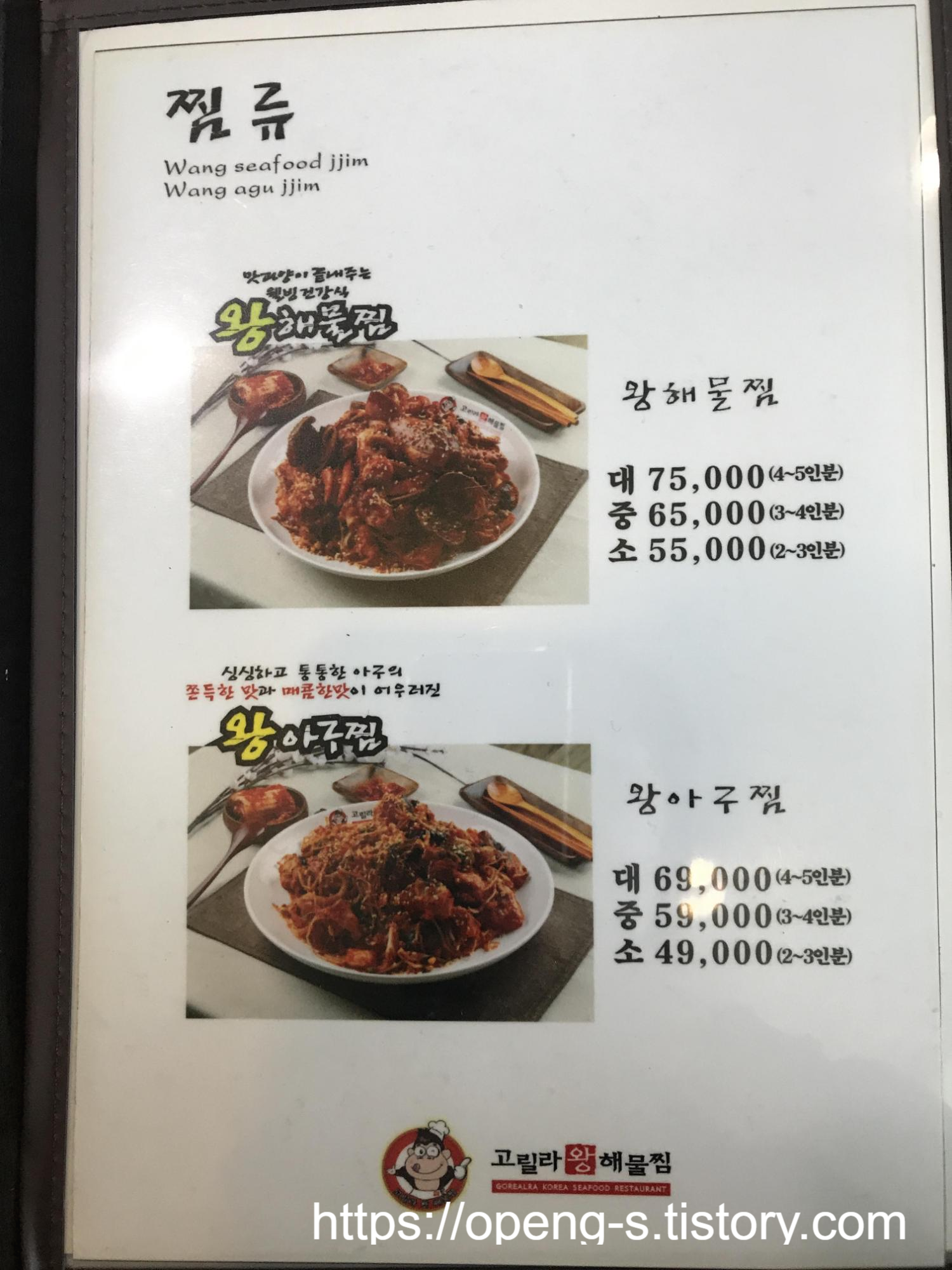 (왕 해물찜 사이즈는 정확히 기억이 안 나네요 ㅠ)